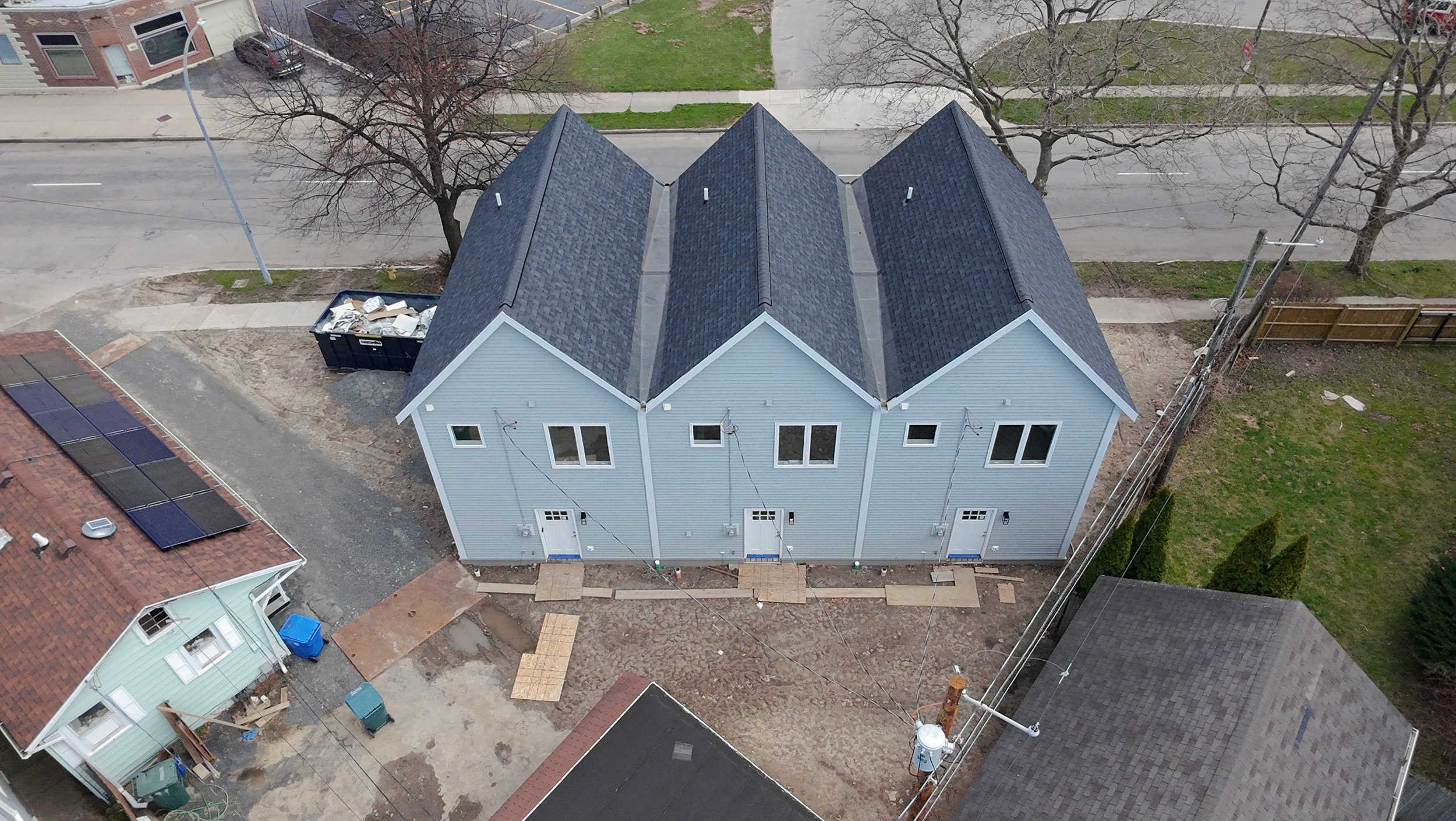 Construction is wrapping up at Brendan Ryan’s first new-construction development project at 169-181 South Union St. The three for-sale townhouses were designed by Pardi Partnership Architects and built by the Cahoon Building Company. Each unit is a 1,008sf 2BR/1.5BA with bright morning and evening light. In keeping with Mr. Ryan’s green bonafides, HVAC is provided by a geothermal system installed beneath the shared parking with 53 Pearl St. next door. Even the sawtooth pattern on the roof was selected not just to mirror traditional gables in the neighborhood, but to facilitate forthcoming solar panels. All three units are expected to hit the market this month.