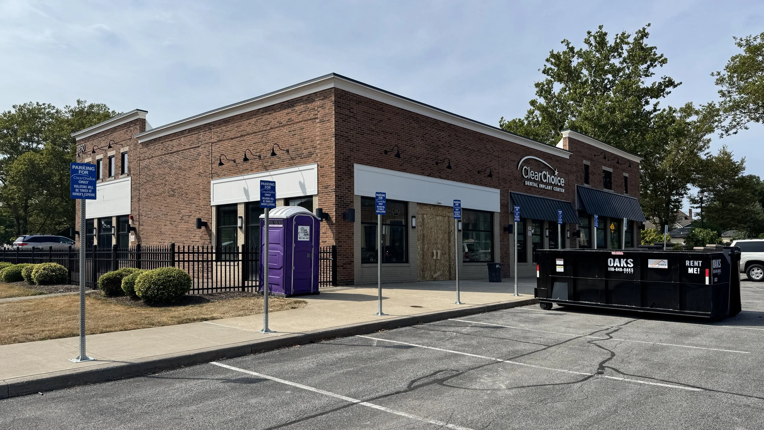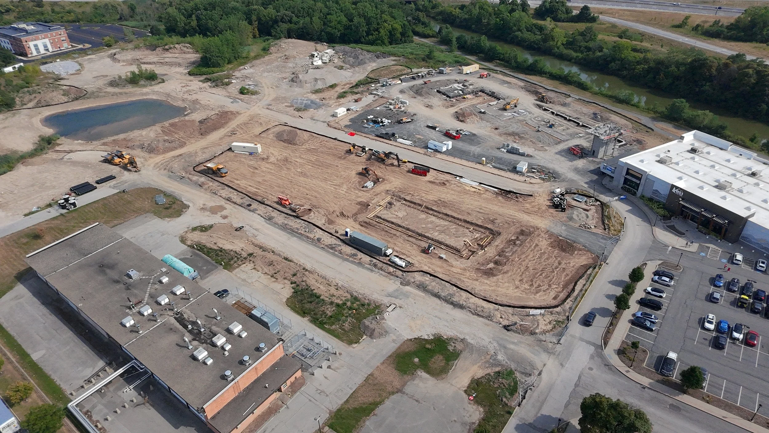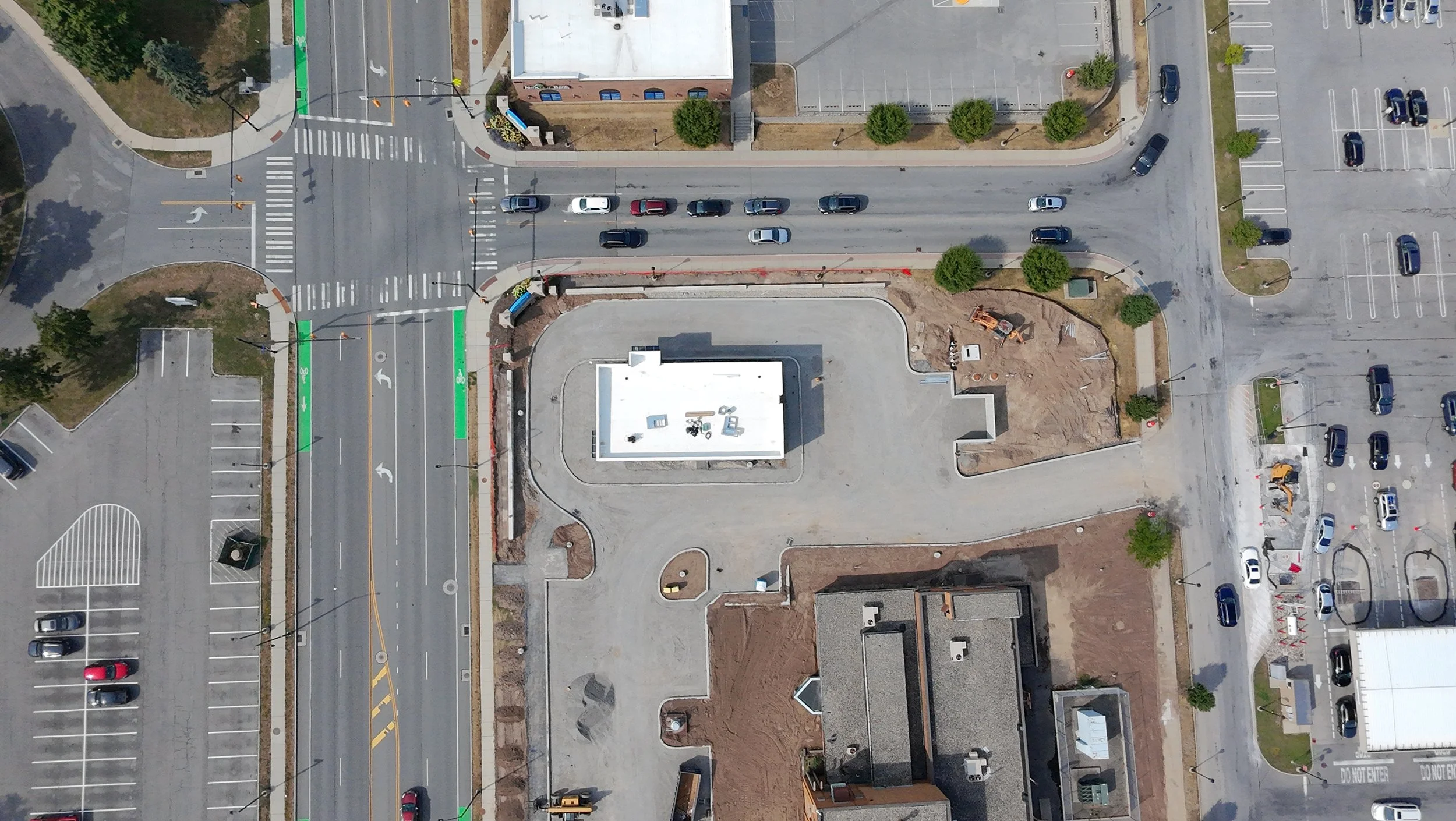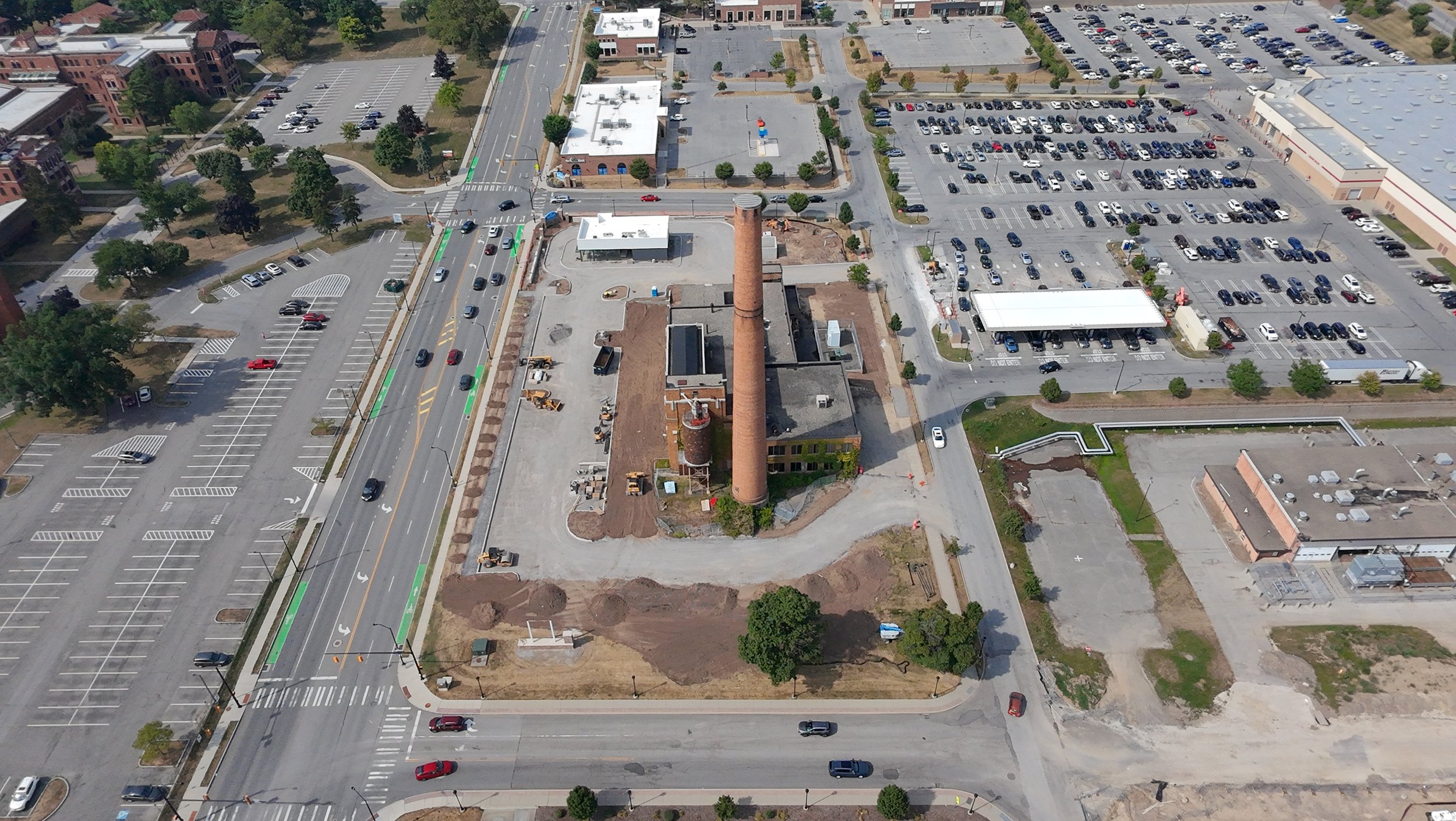Chipotle under construction with its parking wrapped around the old co-gen plant on E. Henrietta Road. The NexTier drive-thru ATM and bank can be seen beyond.